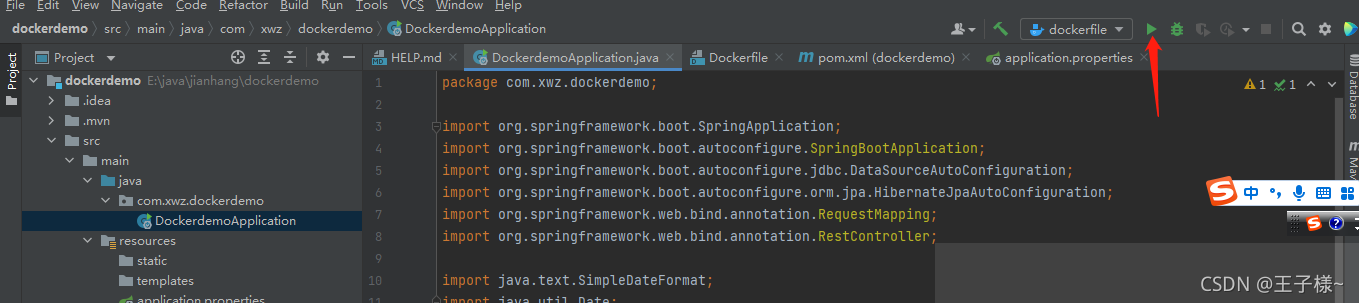 新建一个springboot项目,在pom文件中docker-maven-plugin插件,直接复制