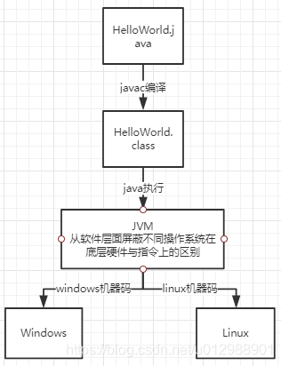 比如下图:我们编译后产生的.class文件是二进制的字节码,字节码是不能被机器直接运行的,通过JVM把编译好的字节码转换成对应操作系统平台可以直接识别运行的机器码指令,JVM充当了一个中间转换的桥梁,这样我们编写的Java文件就可以做到 "一次编译,到处运行" 。