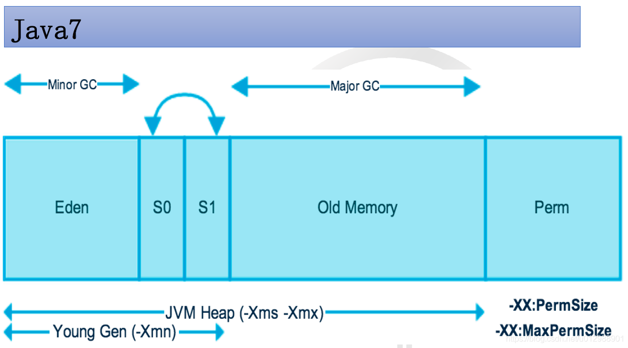 下图是Java7中的Jvm内存划分: