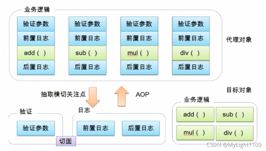 - 横切关注点:跨越应用程序多个模块的方法或功能.既是,与我们业务逻辑无关,但是我们需要关注的部分,就是横切关注点.如日志,安全,缓存,事务等…