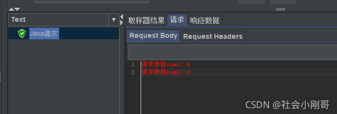 sr.setSamplerData("请求参数num1:" + number1 + "n请求参数num2:" + number2);// 参数放进sr