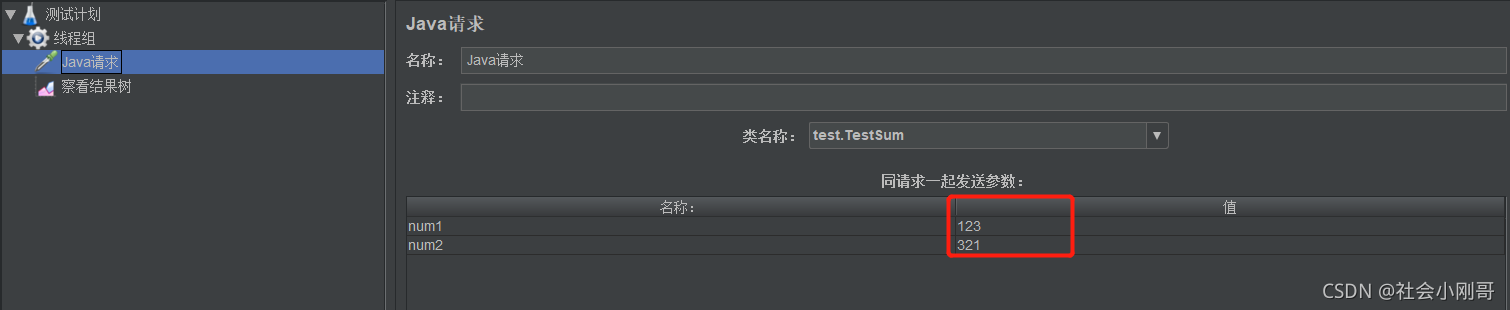 4.导出jar包,放到Jmeter-lib/ext目录,添加一个Java请求,选择我们test下的TestSum就可以了,测试结果如下: