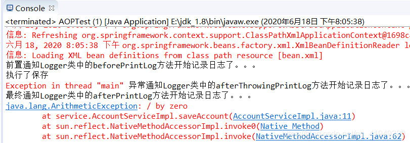 当我们放开AccountServiceImpl类中我们故意制造的异常 int i=1/0;时: