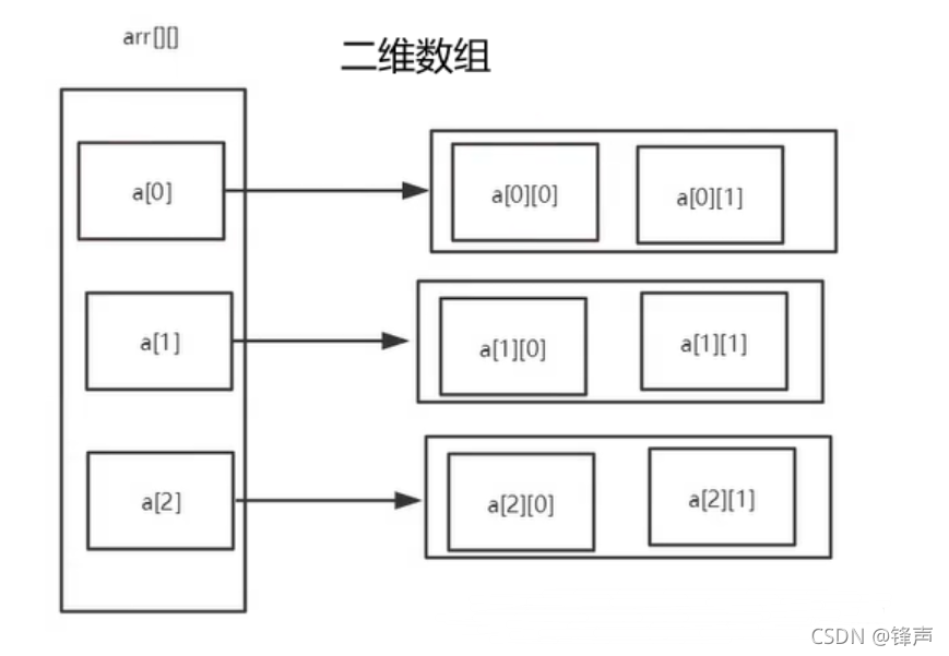 int arr[][] = new int[3][2]; //二维数组,三行两列