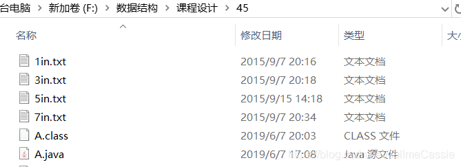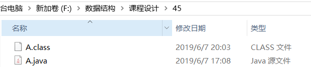假设我们的A.java文件在F:数据结构课程设计45目录下