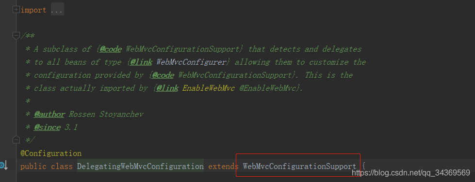 在WebMvcConfigurationSupport.class这个类没有的情况下,才会走SpringBoot的Web自动配置,而在==@EnableWebMvc==中,又惊奇的发现了它