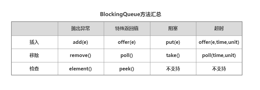 BlockingQueue的方法可以归纳为四类: