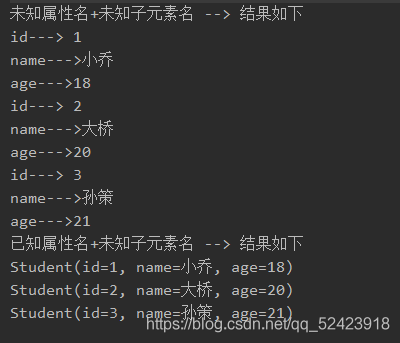 student.setAge(Integer.parseInt(child.elementText("age")));//获取元素中值