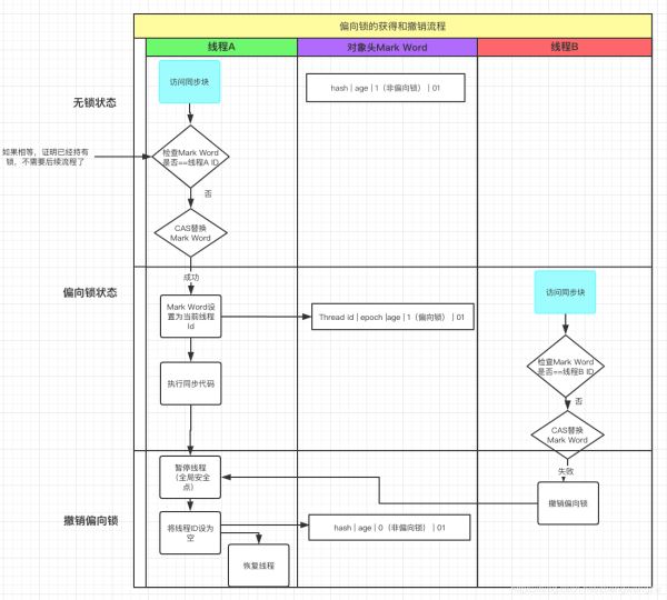 - 首先A 线程访问同步代码块,使用CAS 操作将 Thread ID 放到 Mark Word 当中;