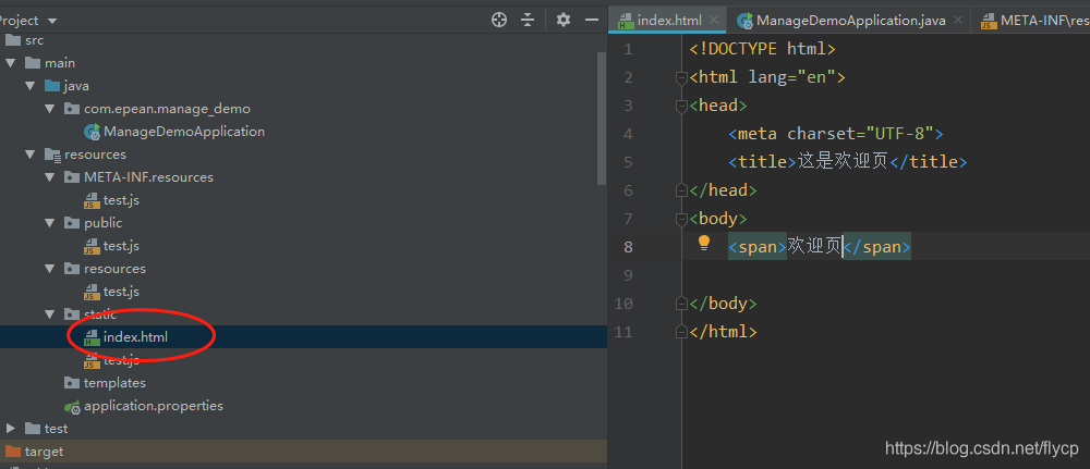 比如我访问 http://localhost:8080/ ,就会找静态资源文件夹下的 index.html