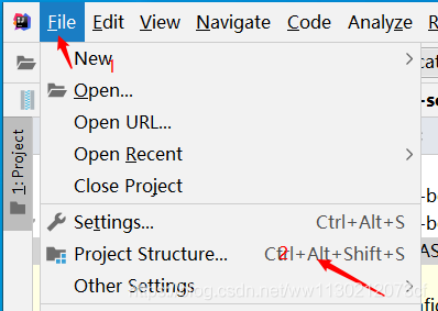 点击进入项目的结构设计中--》首先在打开的项目窗口打开File->Project Structure...,得到如下图所示的项目结构: