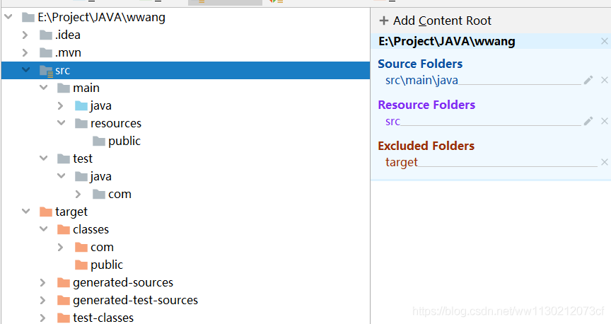 Source Folders表示的都是代码源文件目录,生成的class文件会输出到target->classess文件夹中,但是里面的源文件不会复制到target->classes文件夹中,Test Source Folders表示的都是测试代码源文件目录,生成的class文件同样会输出到target->classess文件夹中,并且里面的源文件不会复制到target->classes文件夹中。
