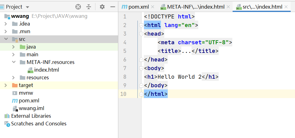 启动后输出的还是HelloWorld,现在我们删掉/META-INF/resources/的index.html再看看: