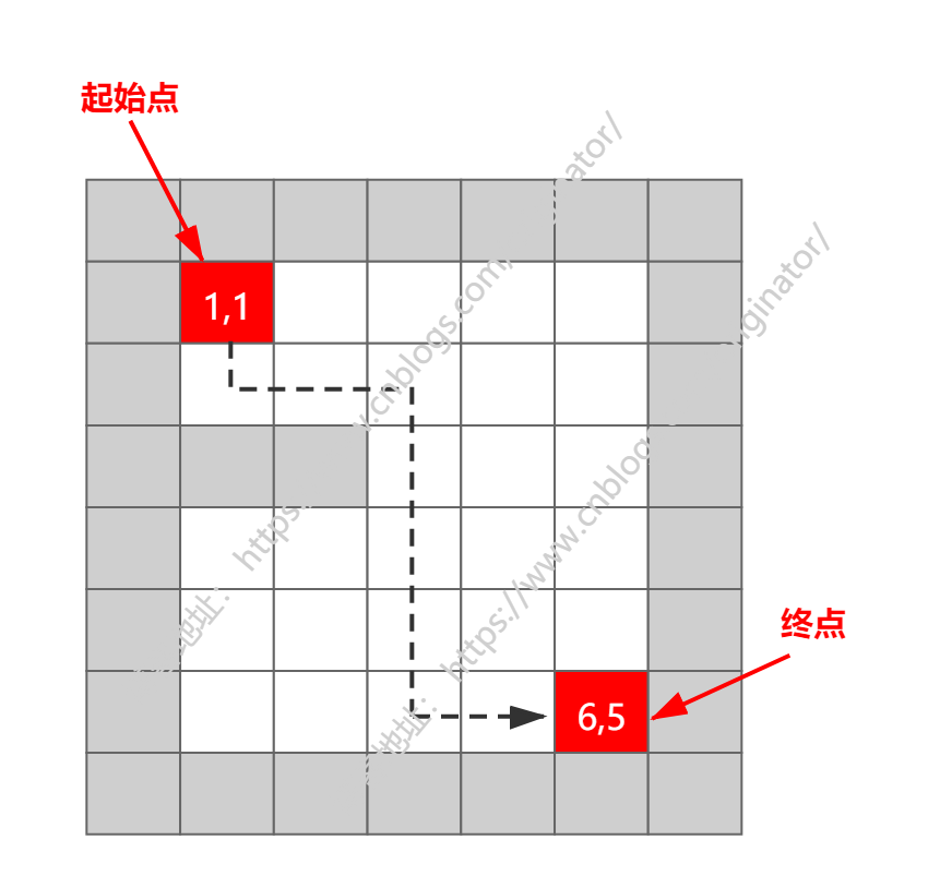 * 0:该点没有走过, 1:表示墙, 2:可以走, 3:该点已经走过,但是走不通