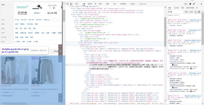 如在某东界面我们发现, 控制目标页面的ID为"plist",则我们使用