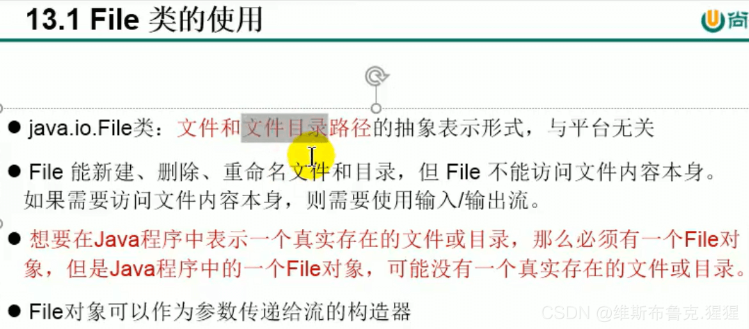 1.File类的一个对象,代表一个文件或一个文件目录(俗称:文件夹)