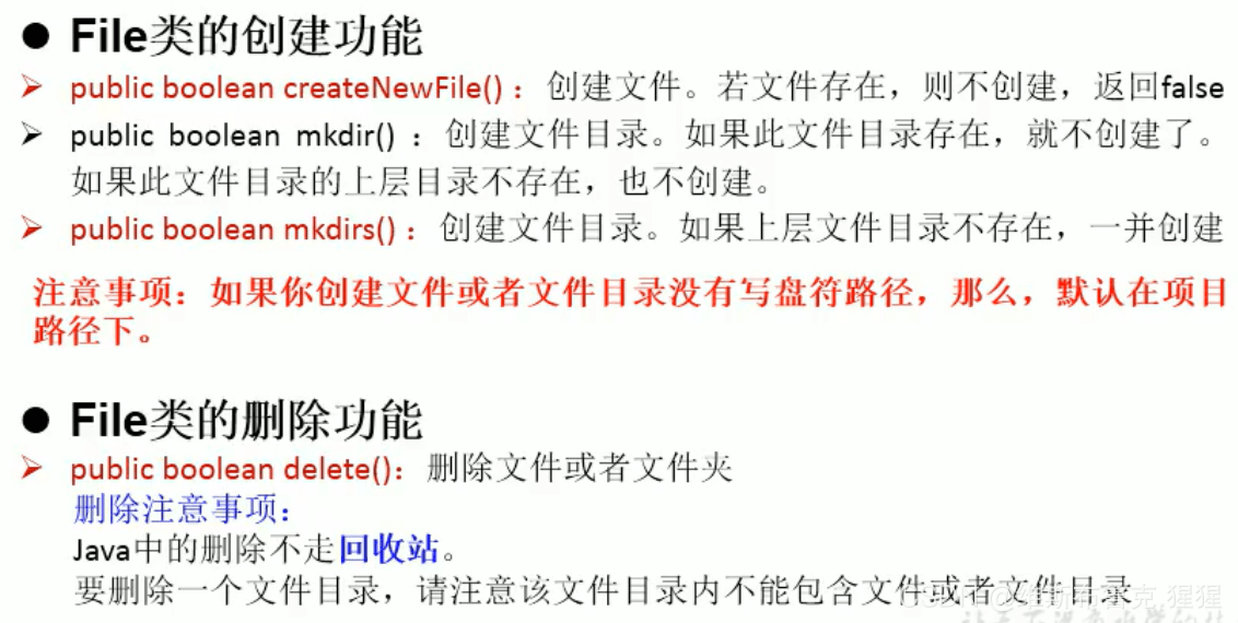 3.File类中涉及到关于文件或文件目录的创建、删除、重命名、修改时间、文件大小等方法。