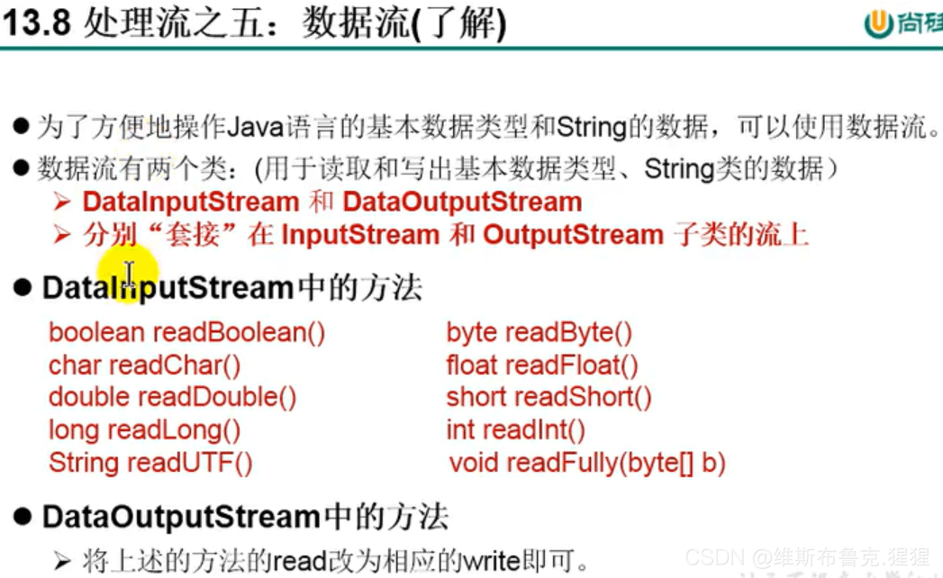 2.作用:用于存储和读取基本数据类型或对象的处理流。