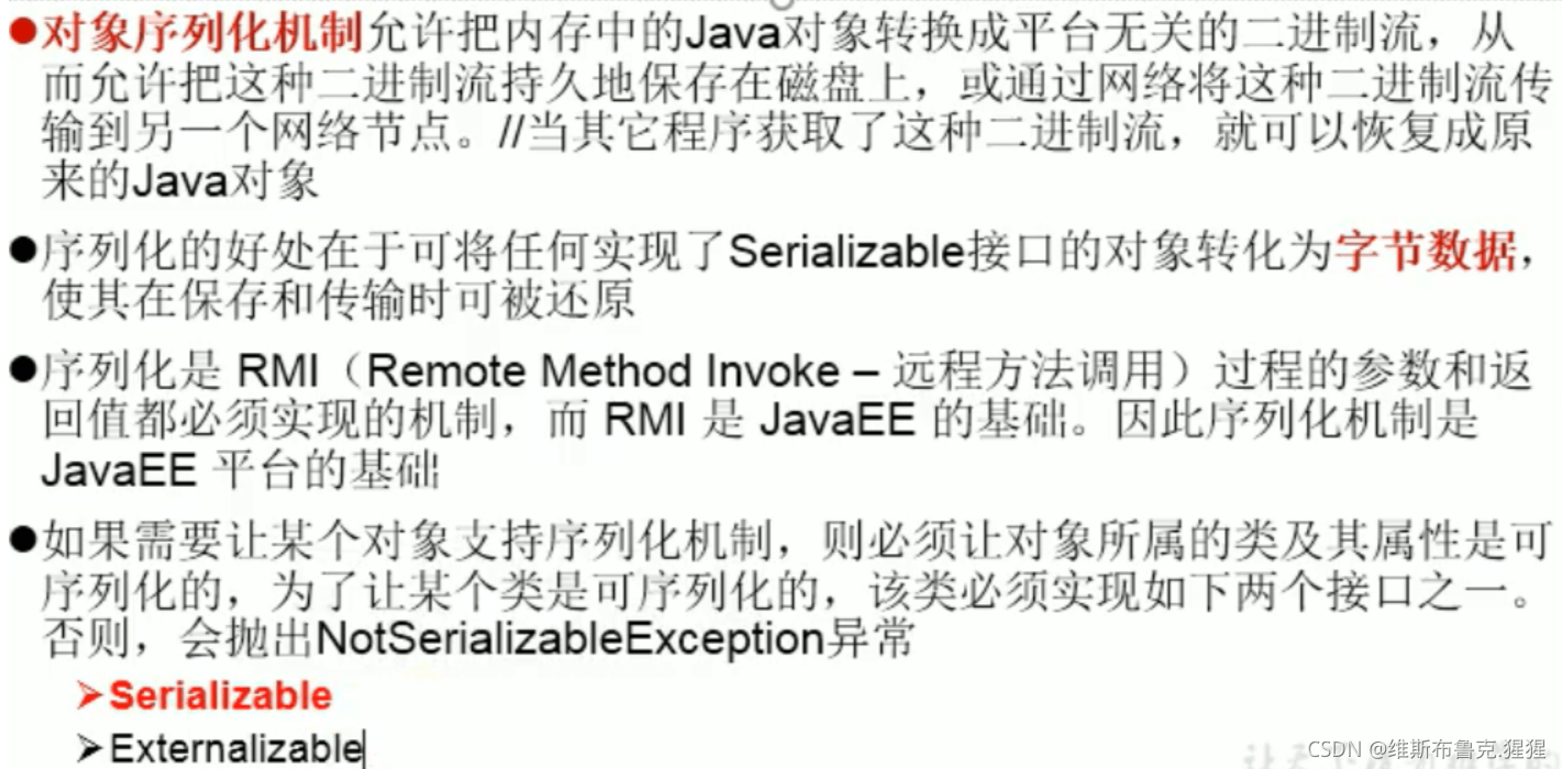 二进制流传输到另一个网络节点,当其他程序获取了这种二进制流,就可以恢复成原来的Java对象