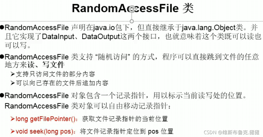 1.RandomAccessFile直接继承于java.lang.Object类,实现了DataInput和DataOutput接口