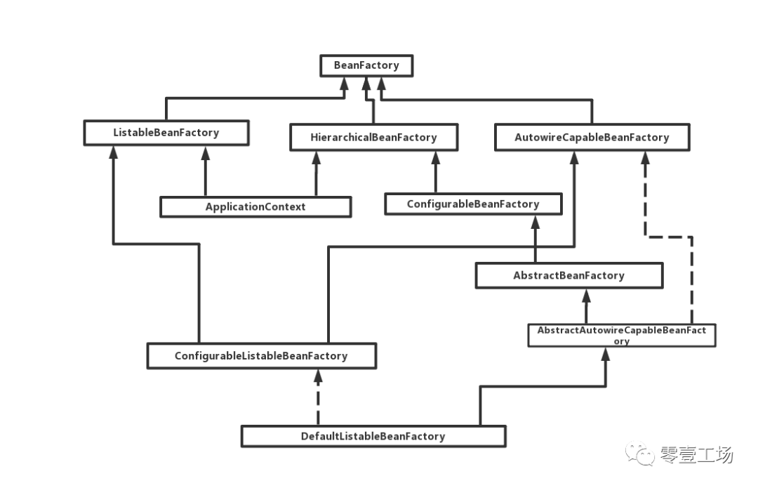AutowireCapableBeanFactory这个bean工厂主要用来做一些bean的自动装配,其他框架也可以与它集成。我们常用的ApplicationContext看似只继承了ListableBeanFactory与HierarchicalBeanFactory,其实ApplicationContext接口也提供了可以获取AutowireCapableBeanFactory工厂的方法。这些bean工厂的默认实现为DefaultListableBeanFactory。