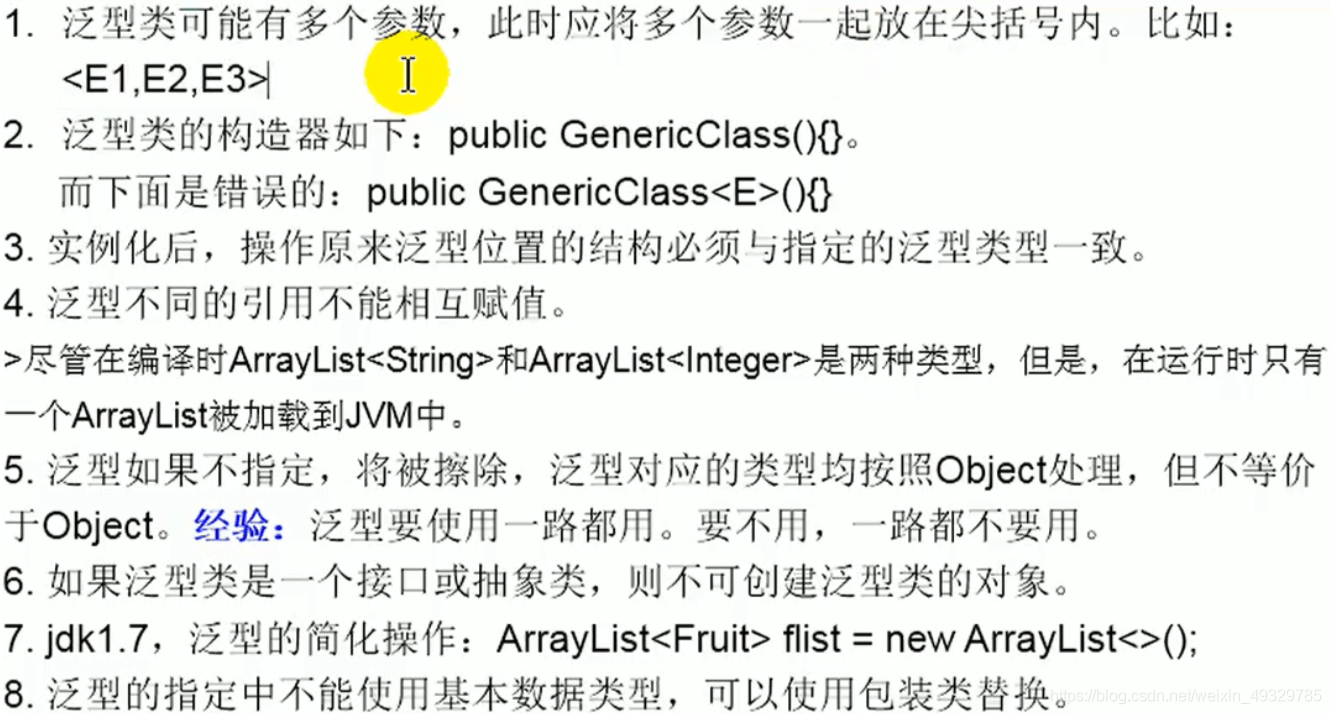 E.如果实例化时,没有指明泛型的类型。默认类型为java.lang.Object类型。