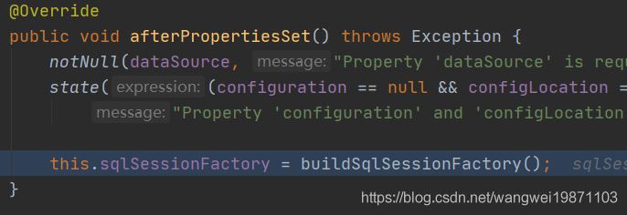 MybatisSqlSessionFactoryBean的初始化后方法afterPropertiesSet调用buildSqlSessionFactory创建SqlSessionFactory: