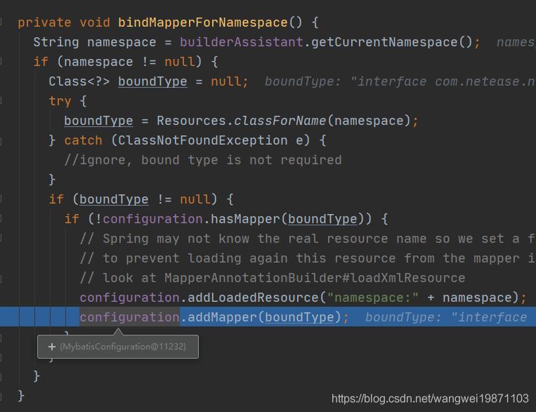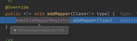 其中有个addMapper的方法,是前面MybatisConfiguration调用的。