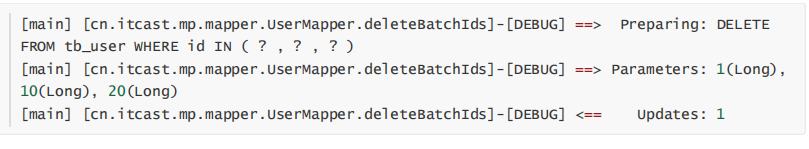int result = this.userMapper.deleteBatchIds(Arrays.asList(1L,10L,20L));