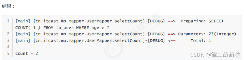 /*** 根据 Wrapper 条件,查询总记录数 ** @param queryWrapper 实体对象封装操作类(可以为 null) */ Integer selectCount(@Param(Constants.WRAPPER) Wrapper<T> queryWrapper);