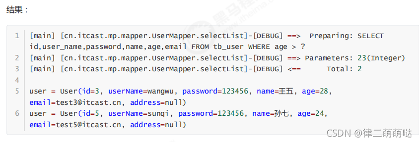 wrapper.gt("age", 23); //年龄大于23岁