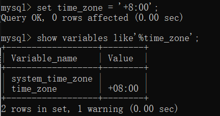 设置时区 set time_zone = '+8:00';