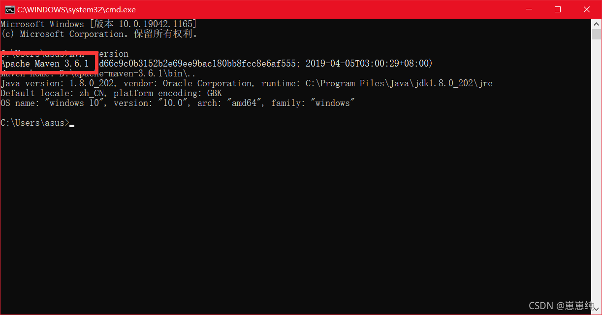 输入mvn -version 如果出现版本号则代表安装成功
