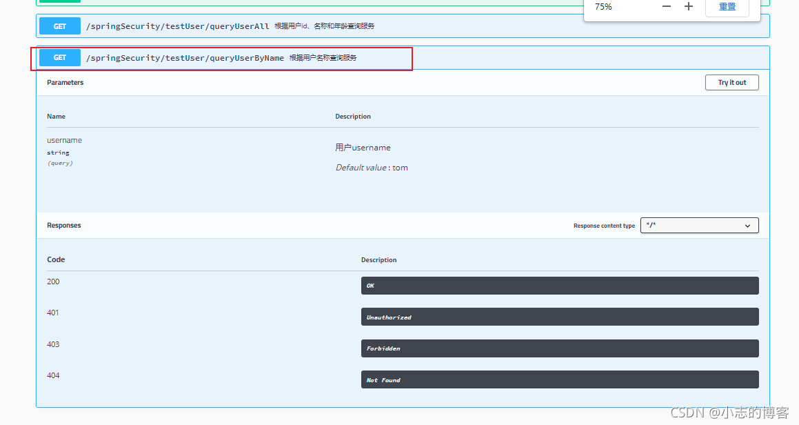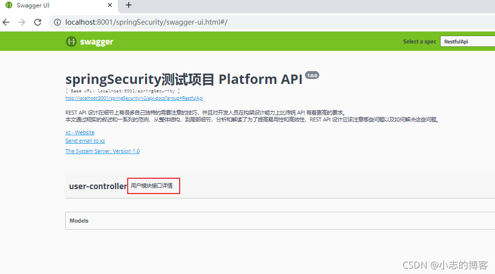 8、启动项目后,访问 http://localhost:8001/springSecurity/swagger-ui.html,如下图: