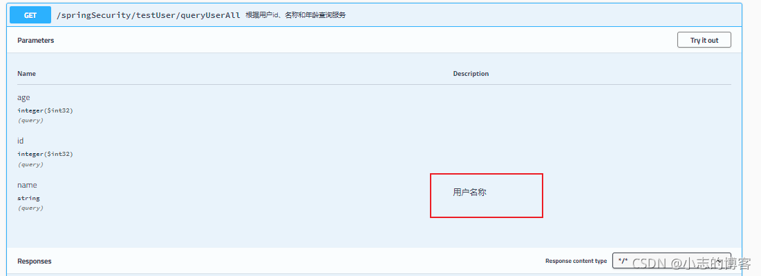 @ApiOperation(value = "根据用户id、名称和年龄查询服务")