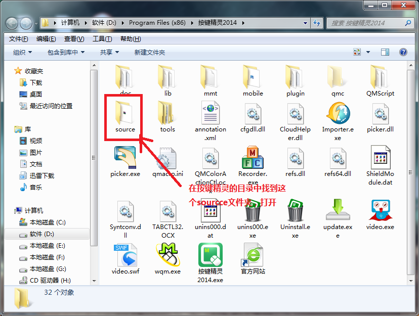 1、至于安装按键精灵和易语言,相信大家都会的,这里主要讲怎么写插件,安装步骤就暂时略过。首先找到按键精灵的安装目录,找到source文件夹打开