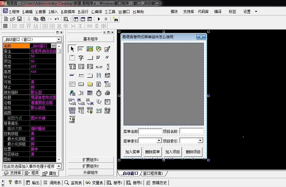 以上就是清爽黑裤最近收集整理的关于易语言卷帘式菜单组件使用教程的全部内容,更多相关易语言卷帘式菜单组件使用教程内容请搜索靠谱客的其他文章。