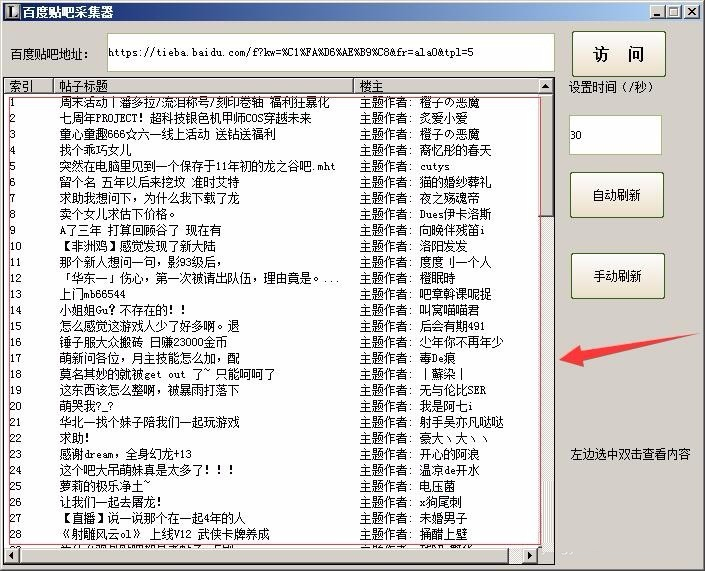 1、效果图如下 因为我界面没有优化 所以很丑 不过没关系 我们要的是功能 打开标题自动进去帖子
