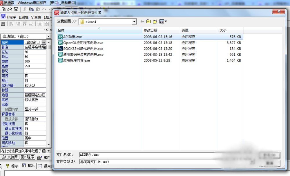 3、我们可以通过易语言的工具---执行易向导,来导入需要的API助手中的函数!