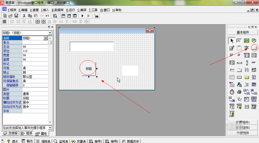 3、添加按钮,双击按钮写代码。