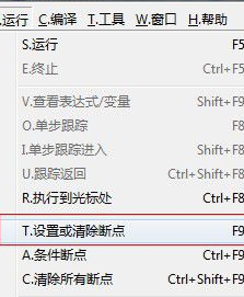 4、之后会弹出新的窗口,在里面找到设置或者清除断点这一选项,按F5键进行。