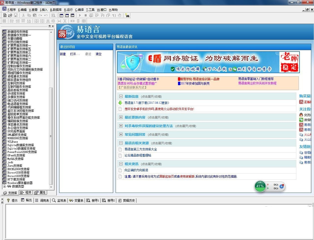 1、首先我们打开易语言。