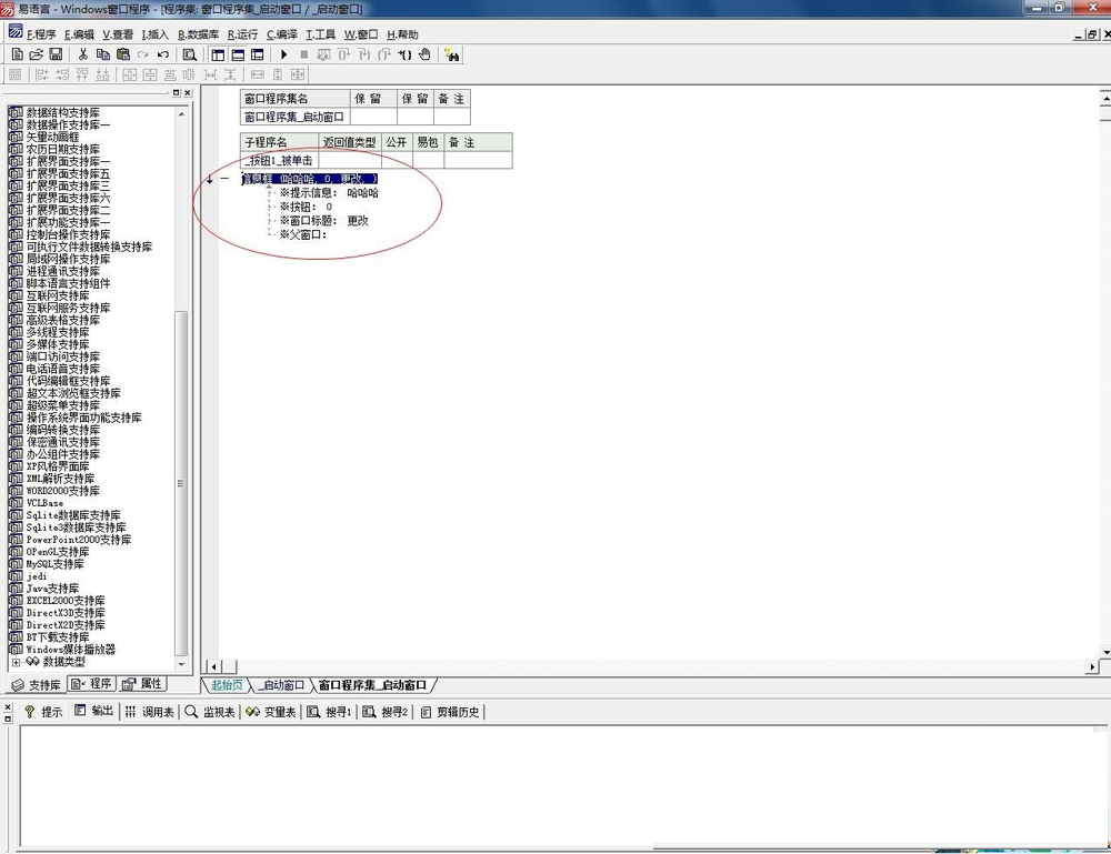 8、在栏里书写“信息框 (哈哈哈, 0, 更改, )”