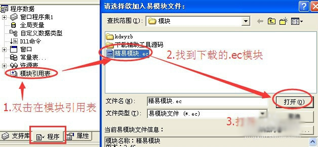再添加模块如图中三步!