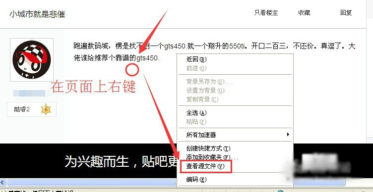 2、比如我们来取百度某贴吧一个帖子内的内容!如下图中的“跑遍数码城,XXXXX”。