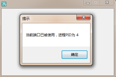 信息框 (“当前端口已被使用,进程PID为 ” + 到文本 (PID), 0, “提示”)