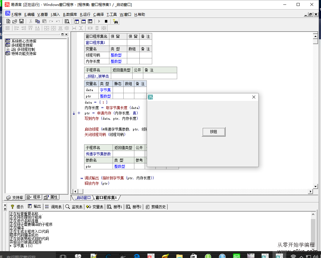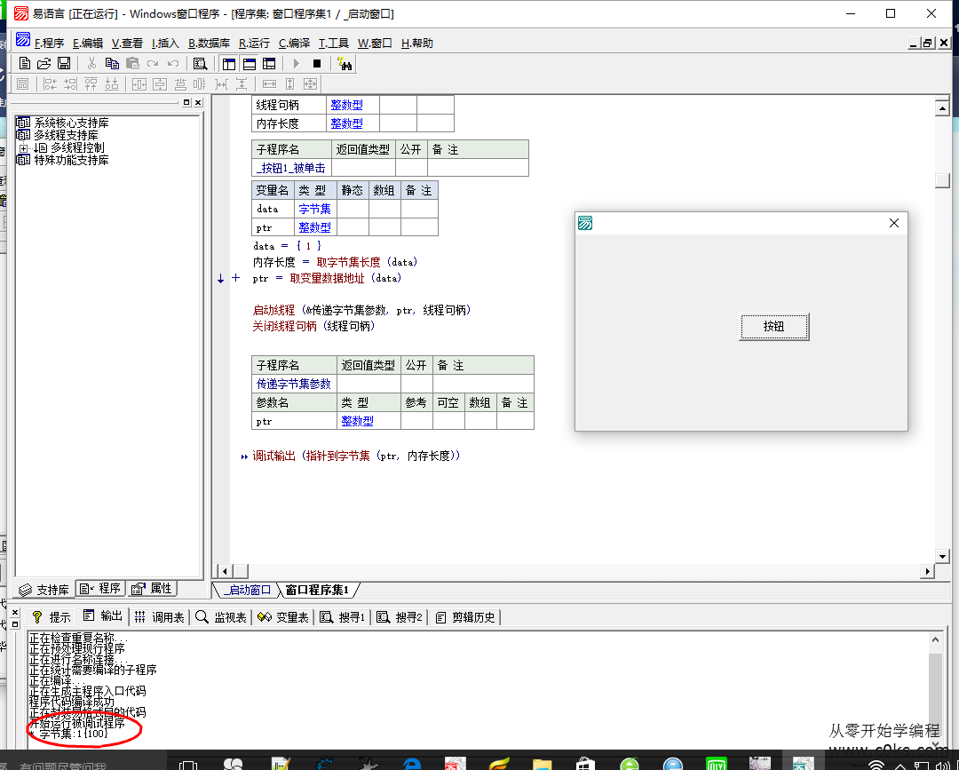 调试输出 (指针到字节集 (ptr, 内存长度))