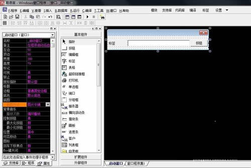 然后,测试文件夹创建完毕之后,打开”易语言“主程序,新建“Windows窗口程序”并点击确定按钮,进入“Windows窗口程序”设计区。如图: