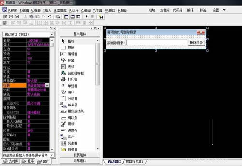 然后,编写程序代码。程序要实现的效果是删除指定的目录,并弹出信息框提示结果。具体代码如下: