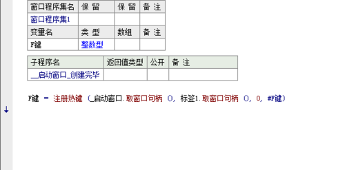 双击启动窗口 进入到启动窗口创建完毕事件子程序 写 注册热键 参数一为窗口句柄 取启动窗口的句柄即可 参数2为标签句柄 用来反馈热键事件 参数3为功能键 比如shift+F键 shift就是功能键 默认值为0 0是无功能键;1是CTRL键 2是HIFT键 4是ALT键 参数4就是要注册的热键 比如M键 回车键 空格键 都可以 如果执行成功返回热键句柄 这时候可以用一个变量来标记 代码如下